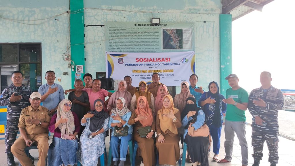 Bone Bolango – Dinas Kelautan dan Perikanan (DKP) Provinsi Gorontalo melalui UPTD Pelabuhan Perikanan Tenda menggelar sosialisasi Peraturan Daerah (Perda) Provinsi Gorontalo Nomor 1 Tahun 2024 tentang Pajak dan Retribusi Daerah. Kegiatan ini dilaksanakan di kawasan Pangkalan Pendaratan Ikan (PPI) Inengo, Desa Inengo, Kecamatan Kabila Bone, Bone Bolango, selasa (22/04/2026).